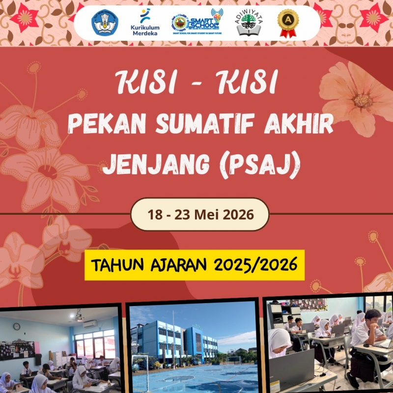 In syaa Allah SMP Islam PB Soedirman 2 Bekasi akan melaksanakan kegiatan Pekan SUMATIF AKHIR JENJANG TAHUN AJARAN 2025-2026 yang akan dilaksanakan pada: